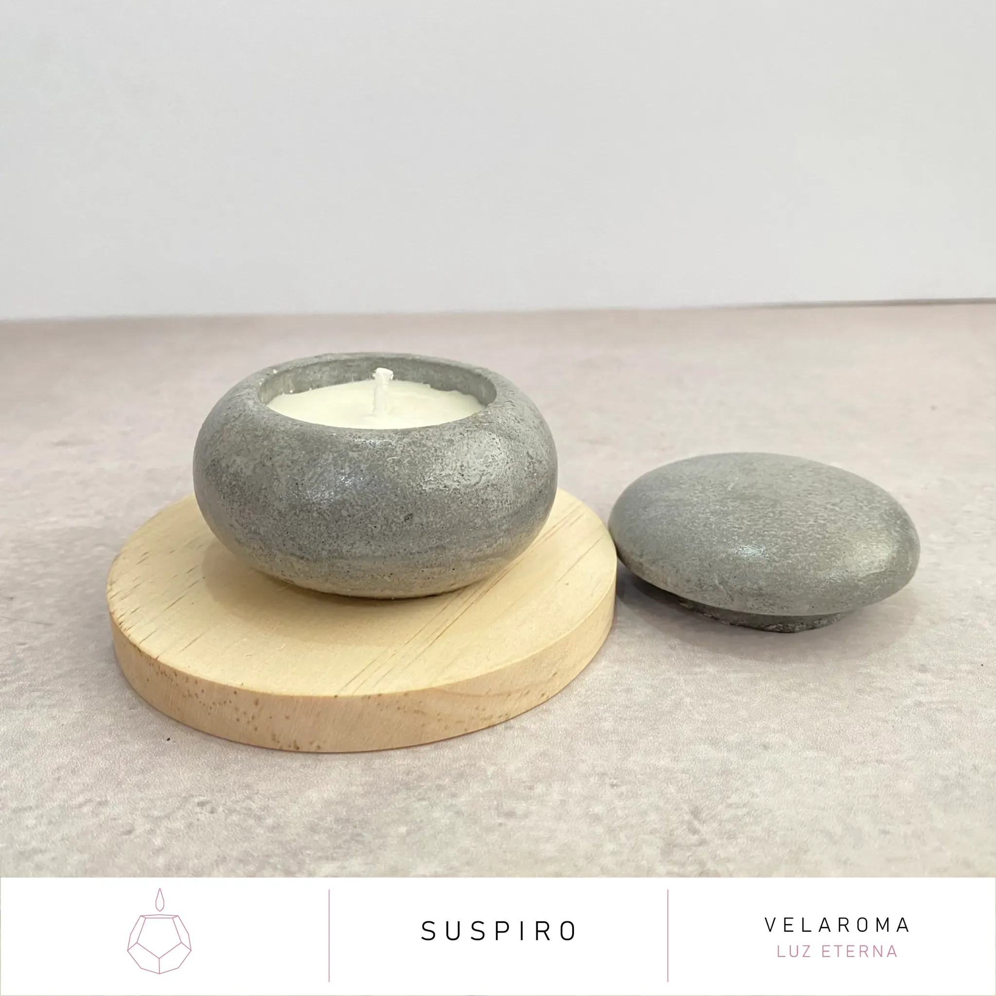 ✨🌿 "Suspiro": La vela que transformará tu espacio con elegancia natural. Hecha a mano con cera de soja de alta calidad, esta vela se presenta en un exclusivo envase de cemento y yeso, que aporta un toque industrial y moderno a tu decoración.
